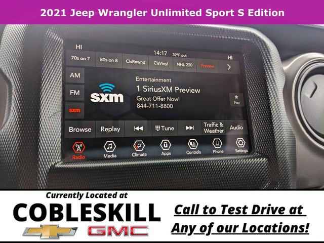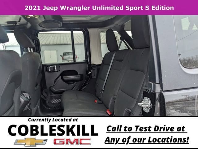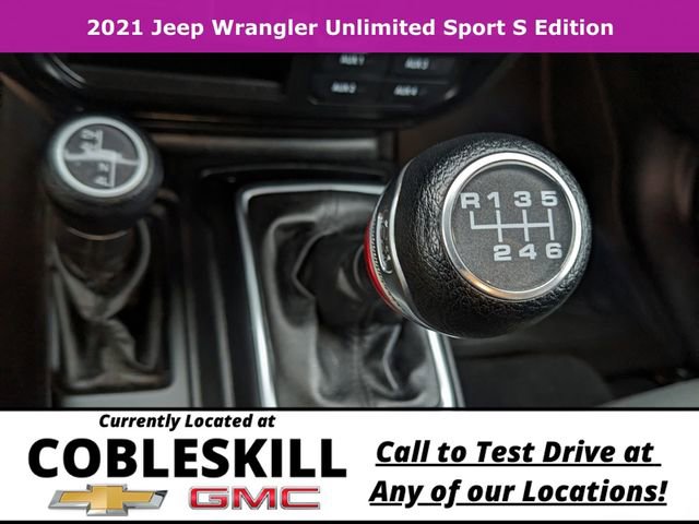 Save Time at the Dealership by Customizing your Deal Online!, 240 Amp Alternator, 3.45 Rear Axle Ratio, 4-Wheel Disc Brakes, 7 & 4 Pin Wiring Harness, 7.0 Touchscreen Display, 700 Amp Maintenance Free Battery, 8 Speakers, ABS brakes, Air Conditioning, Air Conditioning w/Auto Temperature Control, Air Filtering, AM/FM radio, Apple CarPlay, Automatic Headlamps, Aux Battery, Auxiliary Switches, Black 3-Piece Hard Top, Brake assist, Class II Receiver Hitch, Cloth Low-Back Bucket Seats, Cluster 7.0 TFT Color Display, Compass, Deep Tint Sunscreen Windows, Delay-off headlights, Driver door bin, Driver vanity mirror, Dual front impact airbags, Dual front side impact airbags, Electronic Stability Control, For More Info, Call 800-643-2112, Freedom Panel Storage Bag, Front 1-Touch Down Power Windows, Front anti-roll bar, Front Bucket Seats, Front Center Armrest w/Storage, Front fog lights, Front reading lights, Google Android Auto, GPS Antenna Input, Integrated Center Stack Radio, Integrated roll-over protection, Leather Wrapped Steering Wheel, Low tire pressure warning, Manufacturer's Statement of Origin, Mopar Black Tubular Side Steps, No Soft Top, Non-Lock Fuel Cap w/o Discriminator, Normal Duty Suspension, Occupant sensing airbag, Outside temperature display, ParkView Rear Back-Up Camera, Passenger door bin, Passenger vanity mirror, Power Heated Mirrors, Power steering, Quick Order Package 23S Sport S, Radio data system, Radio: Uconnect 3 w/5 Display, Radio: Uconnect 4 w/7 Display, Rear anti-roll bar, Rear reading lights, Rear Window Defroster, Rear Window Wiper/Washer, Remote Keyless Entry, Security Alarm, SiriusXM Radio Service, SiriusXM Satellite Radio, Speed control, Speed Sensitive Power Locks, Split folding rear seat, Sport S, Steering wheel mounted audio controls, Stop-Start Dual Battery System, Sun Visors w/Illuminated Vanity Mirrors, Tachometer, Technology Group, Telescoping steering wheel, Tilt steering wheel, Traction control, Trailer Tow & HD Electrical Group, Trip computer, USB Host Flip, Variably intermittent wipers, Wheels: 17 x 7.5 Black Steel Styled, Wheels: 17 x 7.5 Machined/Painted Black (DISC), Wheels: 17 x 7.5 Tech Silver Aluminum. 2021 Jeep Wrangler Unlimited Sport S 4WD 6-Speed Manual 3.6L V6 24V VVT Black Clearcoat