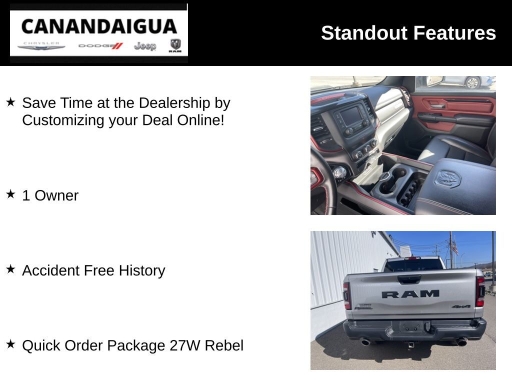Indulge in the premium amenities that set this truck apart, including a 5-inch Uconnect touchscreen display, SiriusXM radio, dual-zone climate control, and a rearview camera for effortless maneuverability. The Rebel's bold exterior styling, with its unique grille, black accents, and 18-inch painted wheels, commands attention wherever you go.